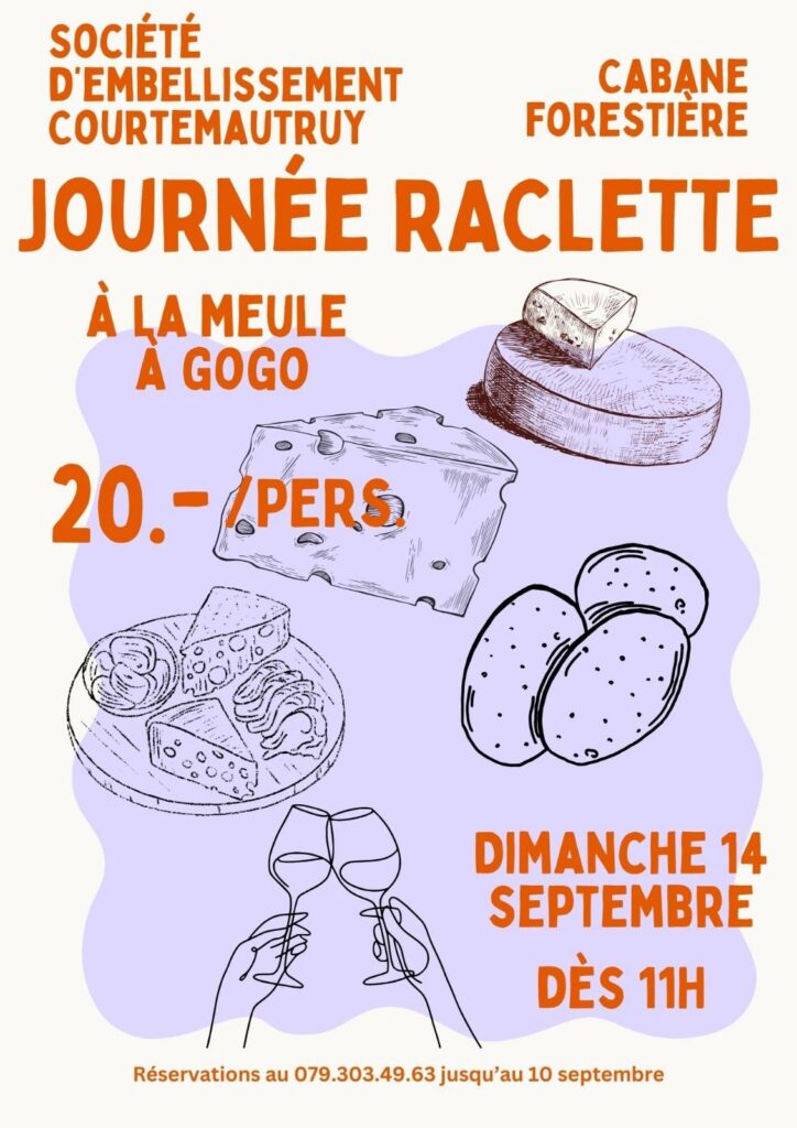 Venez nombreuses et nombreux à notre journée raclette à la meule et à gogo.